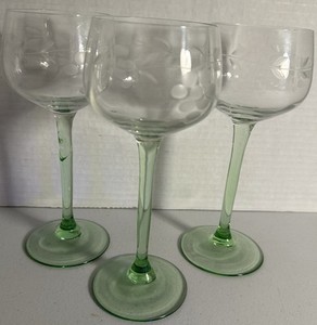 Vintage Peter Behrens 3 Tall Wine Uranium Stemmed Glasses Glow