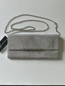 INC International Concepts Beaded Metallic Silver Clutch with removable chain