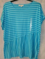 Jones New York sport woman top STRIPED pacific turquoise/capri 2x NWT
