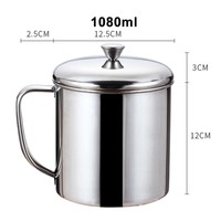 This is a very nice stainless steel cup with handle, with a lid. Perfect finish. Can't say anything bad about it. I will use it to scoop out fish food and measure at the same time. It is heavy duty, perfect for me.