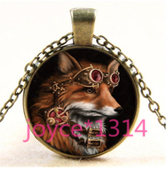 Steampunk Fox Cabochon bronze Glass Chain Pendant Necklace TS-4373
