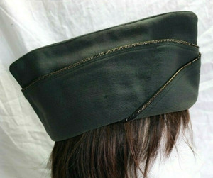 Flying Ace Envelope Hat Military Size 7.5 Wool Green Gold Trim Costume VINTAGE