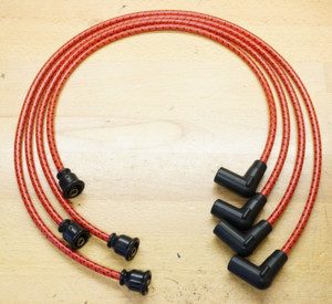 Ford Early 8N Red Deluxe Cloth Covered Spark Plug Wire Set Early Model 1947-1950