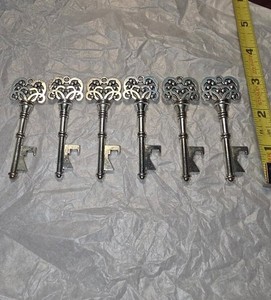 Vintage Style Set of 6 Skeleton Key Bottle Openers - Wedding or Party Favors 6"