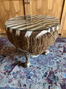 Zebra hide drum top table, 24X20 inches