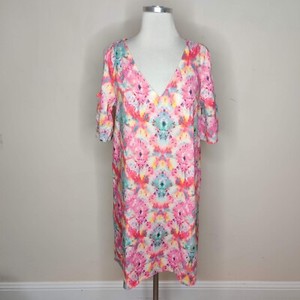 Mouilnette Soeurs Silk Floral Dress Size 0 Pockets Short Sleeve Grey Pink