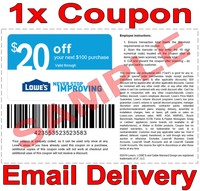 1× Lowes $20 OFF $100 FAST DELIVERY DISCOUNT-1COUPON INSTORE ONLY 𝐄𝐗𝐏 𝟒/𝟑𝟎