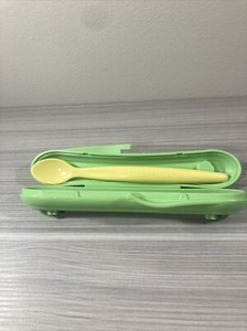 Tupperware Baby Feeding Cutlery Spoon w/Travel Case Green Case Yellow New!