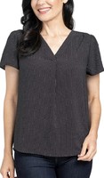The top drapes nicely. The 3x is generously cut. The neck line is a little deep. Looks nice alone or with jacket/sweater. It is flattering. Washes up nice and line dries fast.